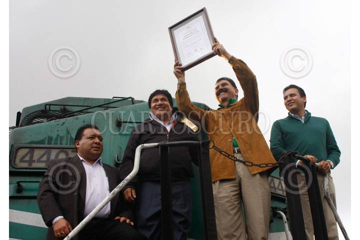 TLAXCALA, TLAXCALA, 11OCTUBRE2011.- Mariano González Zarur, gobernador del estado, Felipe Calderón Hinojosa, Presidente de México y Salomón Chertorivsky, secretario de Salud federal, encabezaron la ceremonia en la izaron la bandera blanca de cobertura universal de salud, además entregaron la póliza 750, 824 del seguro popular. FOTO: EDUARDO MORALES/CUARTOSCURO.COM