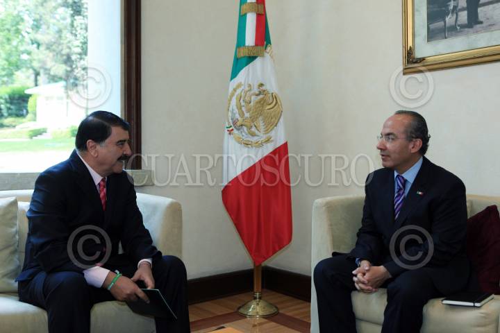 MÉXICO, D.F., 19JULIO2010.- Felipe Calderón Hinojosa, presidente de la nación, se reunió, en la residencia oficial de Los Pinos, con Mariano Gonzalez Zarur, gobernador electo del estado de Tlaxcala. FOTO: ALFREDO GUERRERO/CUARTOSCURO.COM