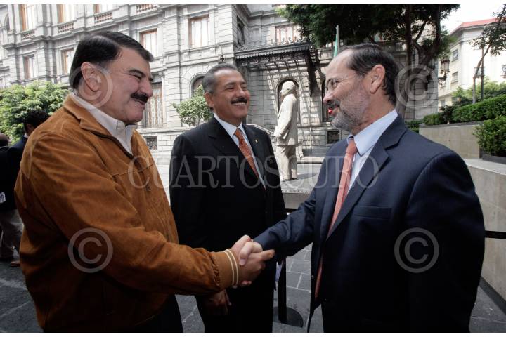 MÉXICO, D.F., 09SEPTIEMBRE2010.- Mariano González Zarur, gobernador electo del estado de Tlaxcala, visitó a su coordinador el priista, Manlio Fabio Beltrones. Al salir de la casona de Xicotencatl, se encontraron a Gustavo Madero, senador del PAN y aspirante a la dirigencia nacional de su partido. FOTO: ESPECIAL/CUARTOSCURO.COM