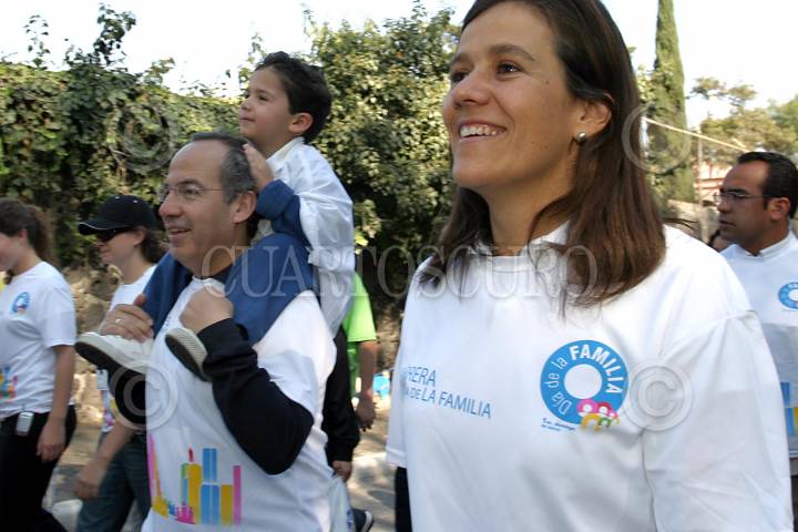MEXICO, D,F., 05MARZO2006.- Felipe Calderón Hinojosa, candidato a la presidencia por el PAN y su esposa Margarita Zavala durante la caminata por el "Día de la familia" en el circuito del Estadio Universitario. FOTO: Rocío Ortiz/CUARTOSCURO.COM