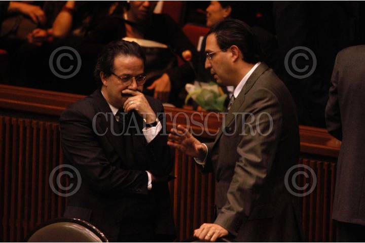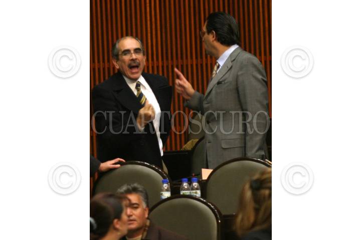 MEXICO, D.F. 14 DICIEMBRE 2004.- Pablo Gómez y Emilio Zebadúa, diputados perredistas discuten durante la sesión ordinaria en Palacio Legislativo. FOTO: Sandra Perdomo/CUARTOSCURO.COM