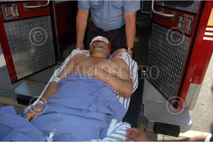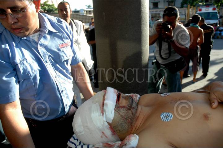 VERACRUZ, VERACRUZ. 04AGOSTO2008.- Fueron ingresados al área de urgencias del hospital general cuatro centroamericanos heridos en un tiroteo registrado esta madrugada en el municipio de Agua Dulce, al sur de la entidad. Donde dos ilegales murieron y otros treinta y cinco resultaron heridos, luego de que el camión tipo torton donde eran trasladados se impactara contra montículo debido a que venia siendo perseguido por policías municipales de este lugar ya que el conductor no había obedecido el alto que se le había marcado. Según la versión oficial indica que fueron el conductor y otras dos personas las que iniciaron el enfrentamiento a tiros por lo que repelieron la agresión con sus armas de cargo. Los ingresados al nosocomio son: Carlos Alberto García Zedillo de 21 años de origen salvadoreño delicado de salud al recibir un impacto de bala a la altura del ojo izquierdo, José Victoriano Hernández, hondureño de 40 años, Andrés Londoyo Cavales , colombiano de 20 años y Pablo Arellano Navarrete de 26 años sin identificar su nacionalidad estos tres últimos politraumatizados, debido a que los hospitales de la zona se vieron saturados, estos fueron trasladados vía aérea hasta esta ciudad. FOTO: JOSÉ CANDELARIO/CUARTOSCURO.COM
