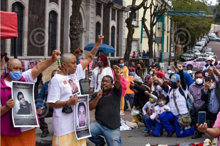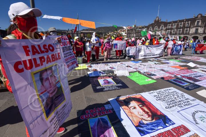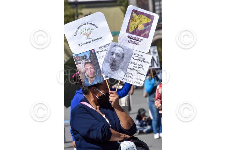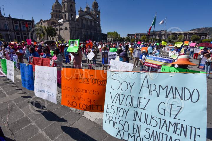 Familiares de personas privadas de la libertad en los penales del Estado de México se manifestaron en la Plaza de los Mártires exigiendo sea aprobada la Ley de Amnistía en el Estado de México.