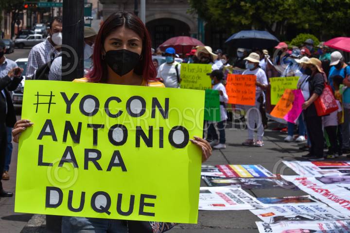 Integrantes del Centro de Derechos Humanos Zeferino Ladrillero y Haz Valer no Libertad se manifestaron en rechazo a la orden de aprensión del abogado Antonio Lara Duque defensor de Derechos Humanos.