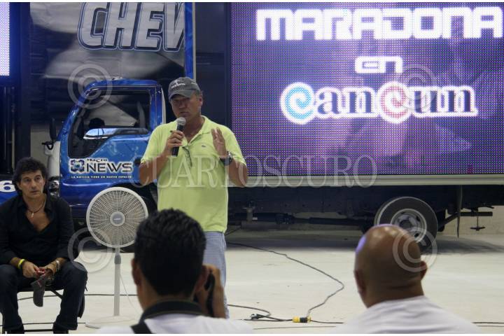 CANCÚN, QUINTANA ROO, 27AGOSTO2007.- Sorpresivamente se presento el ex portero argentino de los ochenta y que milito con el club América; Héctor Miguel Zelada en el estadio Olímpico, en donde anunció que para iniciós del proximo mes se realizará un showbol con la participación del astro argentino Diego Armando Maradona. FOTO: MARCO POLO GUZMÁN HERNÁNDEZ/CUARTOSCURO.COM