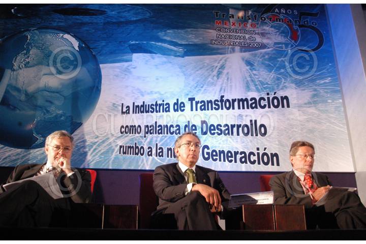MÉXICO D.F. 16ENERO2007.- Ilkka Heiskanen. embajador de la República de Finlandia, Cuauhtémoc Martínez presidente de CANACINTRA y George Troup, embajador de la República de Nueva Zelandia, durante su participación en la Convención de Industriales, que se llevo acabo en un lujoso hotel del centro. FOTO: GUILLERMO PEREA /CUARTOSCURO.COM