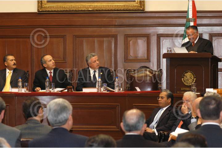 MÉXICO, D.F. 15DICIEMBRE2006.- Felipe Calderón Hinojosa, presidente de México, acudió junto con Jorge Zermeño Infante, presidente de la mesa directiva de la Cámara de Diputados, a la Suprema Corte de Justicia de la Nación (SCJN) a escuchar el informe de actividades del presidente de la SCJN. FOTO: IVÁN STEPHENS/CUARTOSCURO.COM