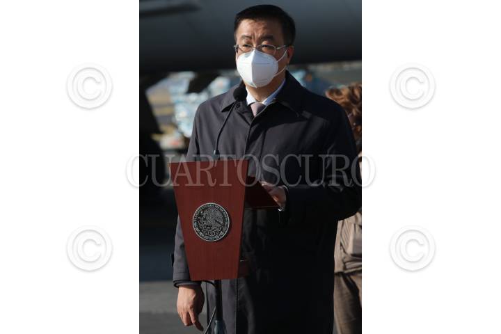 Zhu Qingqiao, embajador Extraordinario y Plenipotenciario de China ante los Estados Unidos Mexicanos, durante su participación en el arribo de 200 mil vacunas Sinovac provenientes de Hong Kong para el Covid-19