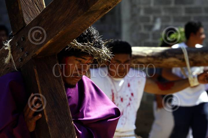 ZIMATLAN, OAXACA, 22ABRIL2011.- Fieles de católicos protagonizaron la representación de la Pasión de Cristo en el poblado de Santa Gertrudiz Zimatlan, poblado ubicado a 40 minutos de la capital oaxaqueña. FOTO: CARLOS SALINAS/CUARTOSCURO.COM