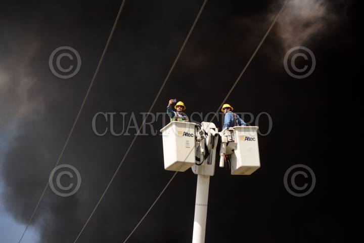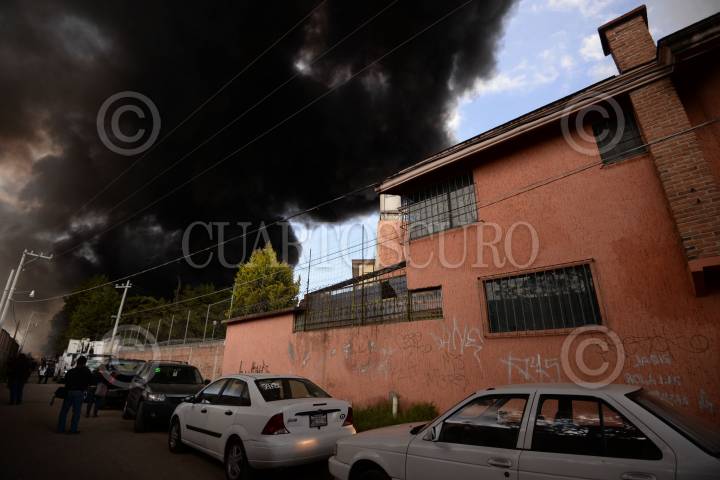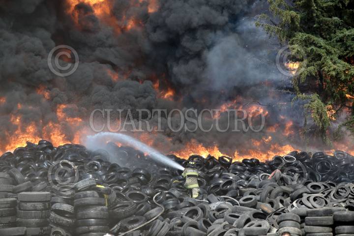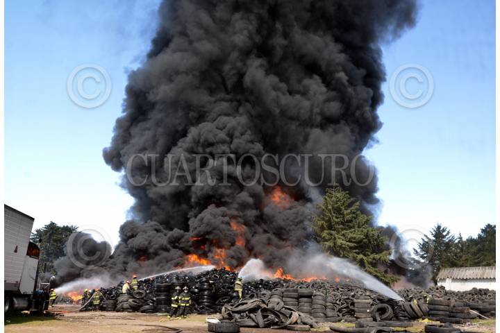 ZINACANTEPEC, ESTADO DE MÉXICO, 22NOVIEMBRE2017.- Un incendio se registró en un predio ubicado en el barrio del Calvario, en donde se tenían almacenadas llantas. Bomberos de los municipios vecinos como Metepec, Toluca y Almoloya de Juárez apoyaron en el siniestro, ante la magnitud del incendio, quienes trabajaron por varias horas para sofocarlo. FOTO: ARTEMIO GUERRA BAZ /CUARTOSCURO.COM