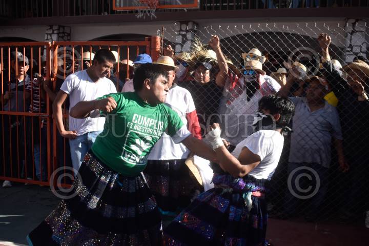 Con filtros sanitarios y un acceso restringido, Zitlala llevo a cabo su ancestral Pelea de Xochimilcas en la plaza central de esta cabecera municipal.
