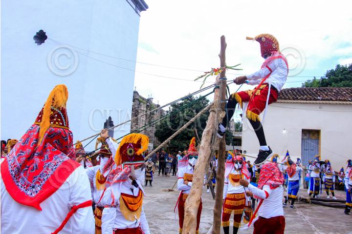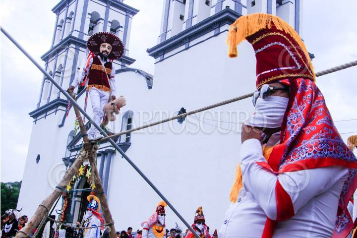 Los llamados Maromeros de Zitlala muestran su Los llamados Maromeros de Zitlala muestran su habilidad en la cuerda floja durante los festejos de San Nicolás Tolentino en la comunidad Nahua.