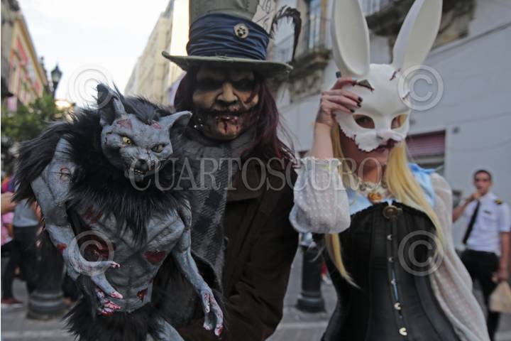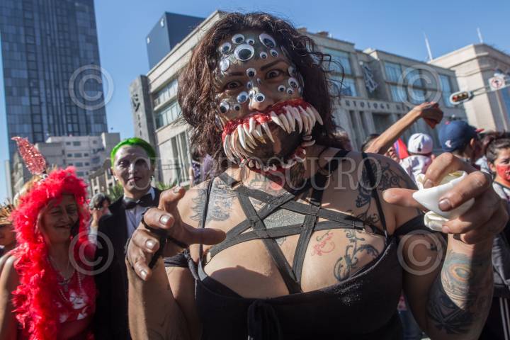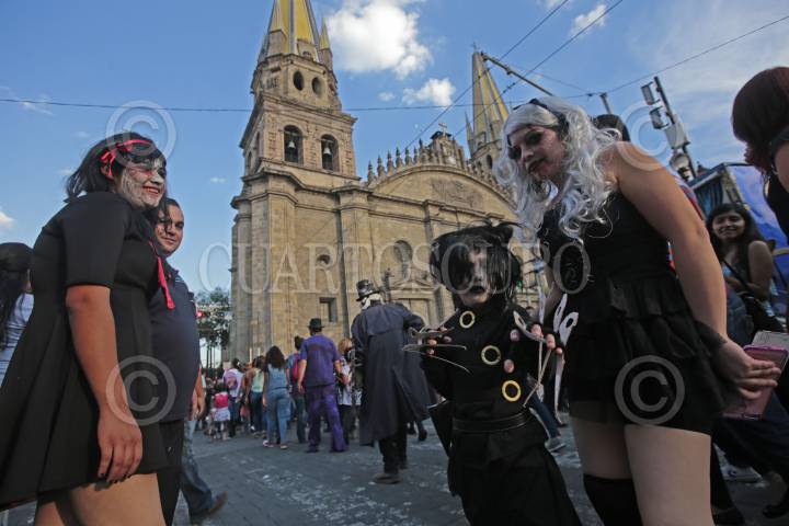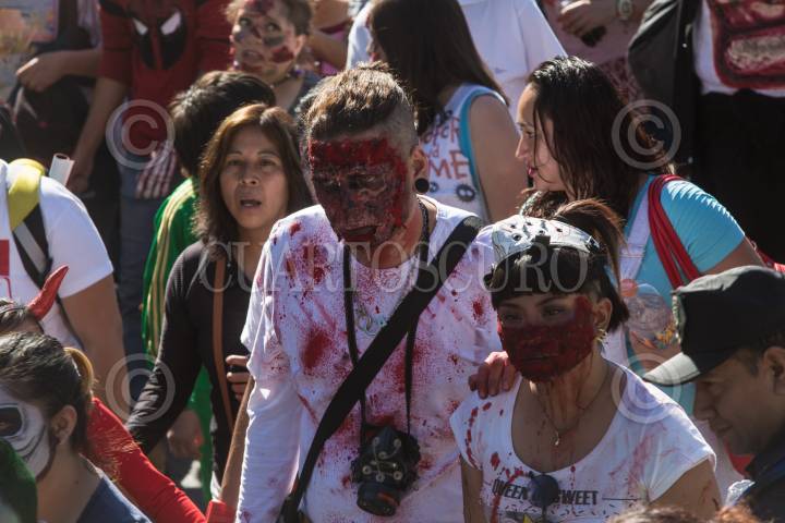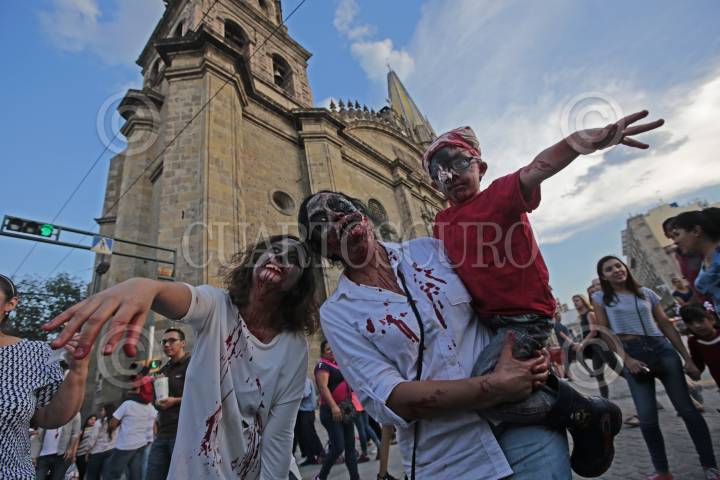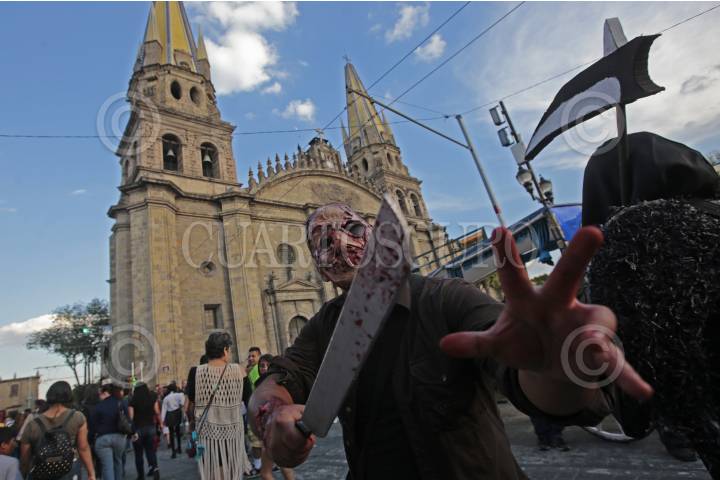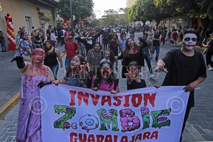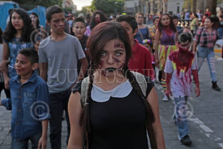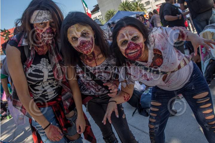 GUADALAJARA, JALISCO. 28OCTUBRE2017.- La tarde de hoy decenas de jóvenes salieron a las calles de la ciudad y desfilaron de la Rambla Cataluña hasta la Frikie Plaza en lo que denominaron “Invasión Zombie”. FOTO: FERNANDO CARRANZA GARCIA / CUARTOSCURO.COM