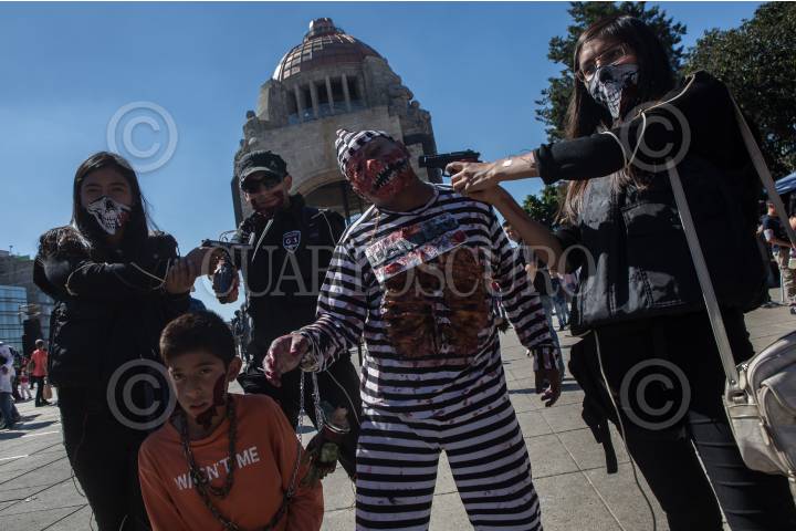 Se llevó a cabo la edición número 15 de la marcha Zombie, que inició en el Monumento a la Revolución y culminó en el Zócalo capitalino