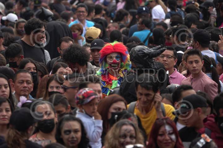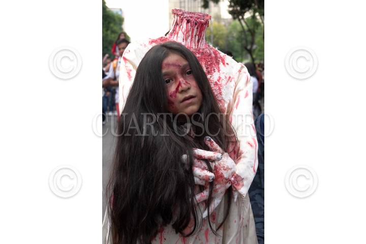 CIUDAD DE MÉXICO, 04NOVIEMBRE2017.- Cientos de personas de todas las edades se caracterizaron como zombies y de algunos otros disfraces para realizar su gran marcha zombie anaual, del Monumento a la Revolución al Zócalo. En esta ocasión, los ciudadanos convocaron a realizar una donación en este evento para los damnificados del sismo del pasado 19 de septiembre. FOTO: TERCERO DÍAZ /CUARTOSCURO.COM