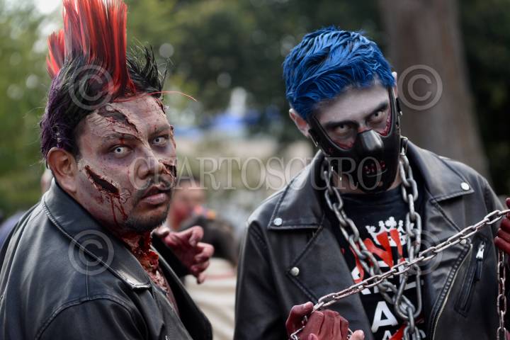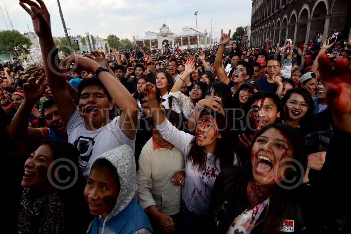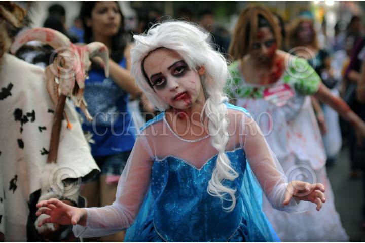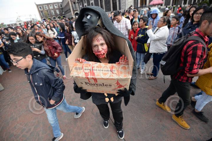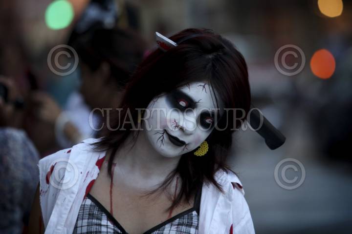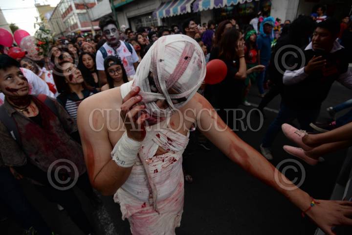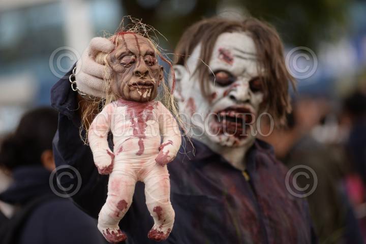 TOLUCA, ESTADO DE MÉXICO, 28OCTUBRE2017.- Más de tres mil zombies, Catrinas, asesinos y otros personajes partiparon en la Zombie Walk que se realizó en las calles de la ciudad de Toluca. FOTO: ARTEMIO GUERRA BAZ /CUARTOSCURO.COM