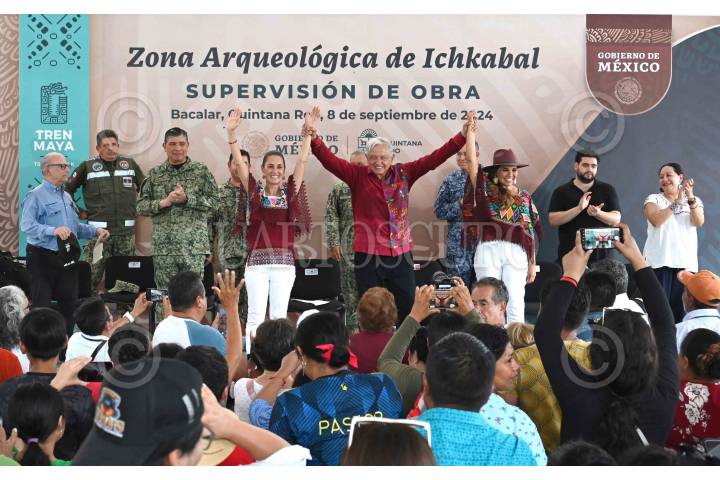 BACALAR, QUINTANA ROO, 08SEPTIEMBRE2024.- Andrés Manuel López Obrador, Presidente de México; durante la supervisión de obra de la Zona Arqueológica de Ichkabal, la cual será abierta el público en fecha próxima. FOTO: PRESIDENCIA/CUARTOSCURO.COM