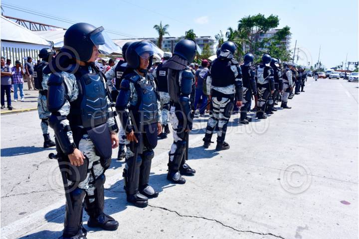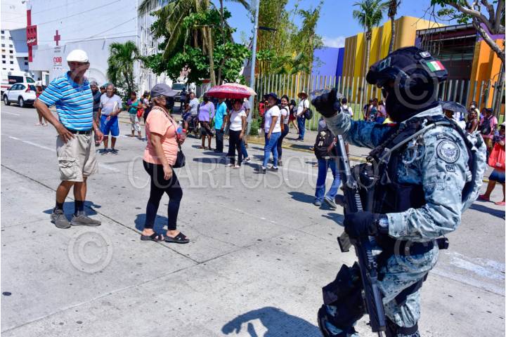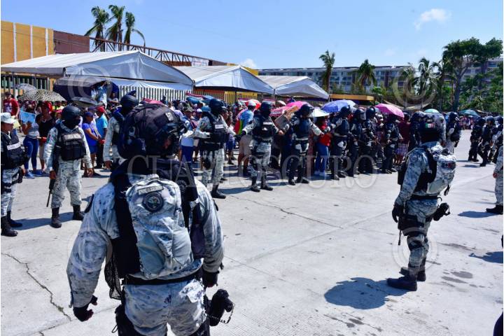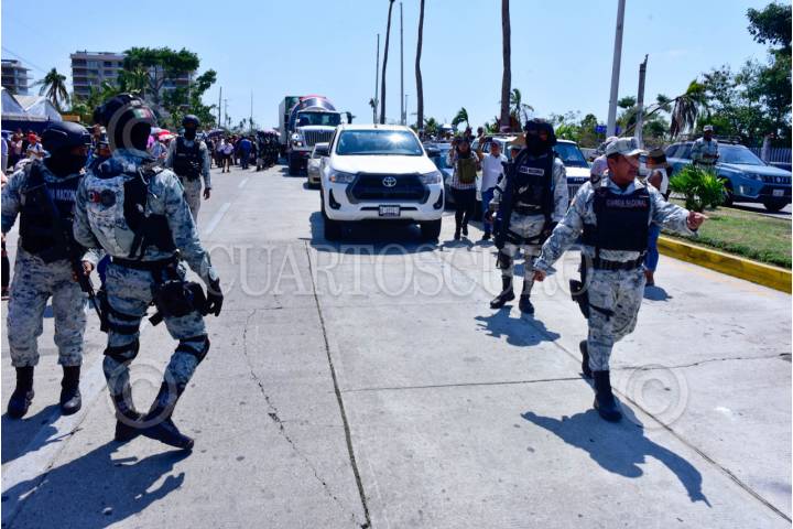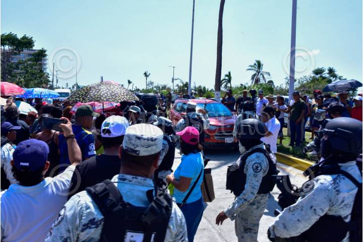 ACAPULCO, GUERRERO, 26FEBRERO2024.- Efectivos de la Guardia Nacional replegaron a un grupo de personas que bloquearon por unos minutos el boulevard de Las Naciones en la Zona Diamante de Acapulco, los manifestantes exigían ser censados para recibir los apoyos por afectaciones del huracán Otis. La Guardia Nacional tiene desplegados a varios afectivos para evitar protestas y bloqueos en la Zona Diamante, lugar donde el día de hoy se inaugura el torneo del Mextenis. FOTO: CARLOS ALBERTO CARBAJAL/CUARTOSCURO.COM