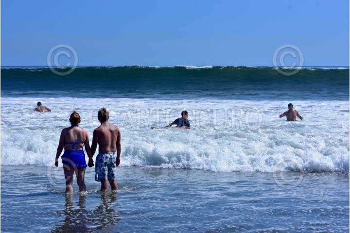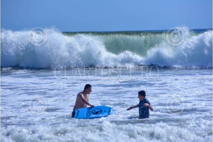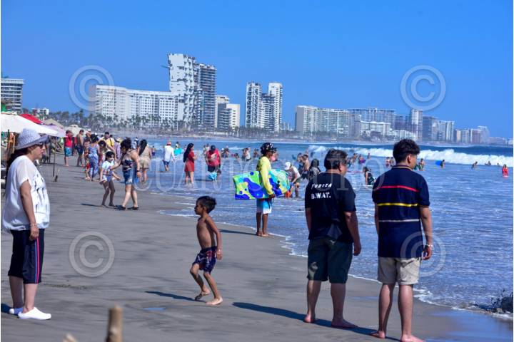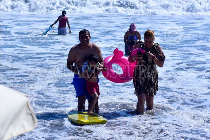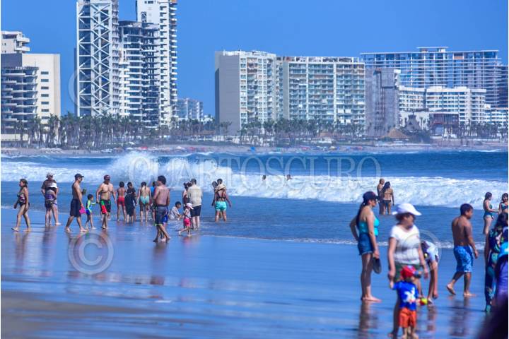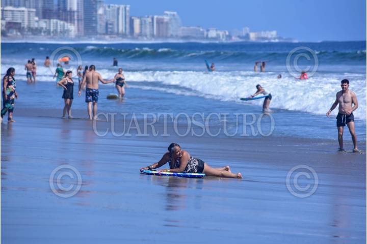 ACAPULCO, GUERRERO, 28MARZO2024.- Cientos de turistas llenaron la Playa Revolcadero en la Zona Diamante de Acapulco, en donde a pesar del fuerte oleaje algunos bañistas entraron al mar, autoridades informaron que hay hasta el momento un 69.6 ? ocupación hotelera en este Jueves Santo. FOTO: CARLOS ALBERTO CARBAJAL/CUARTOSCURO.COM