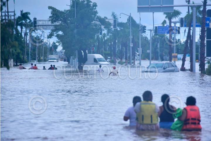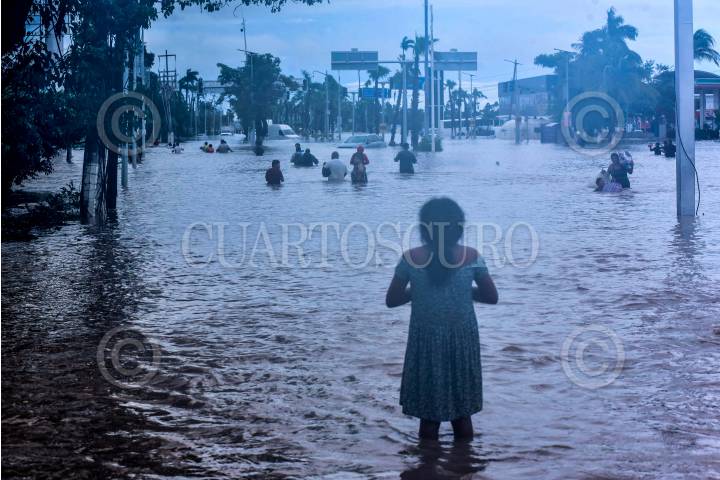 ACAPULCO, GUERRERO, 27SEPTIEMBRE2024.- La Zona Diamante de Acapulco continúa inundada después de cinco días del paso del huracán John, en el lugar se puede observar a los habitantes caminar entre las calles inundadas, buscando alimentos o en busca desalojar la zona.¡ FOTO: CARLOS ALBERTO CARBAJAL/CUARTOSCURO.COM