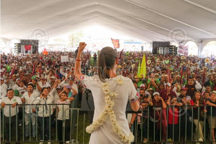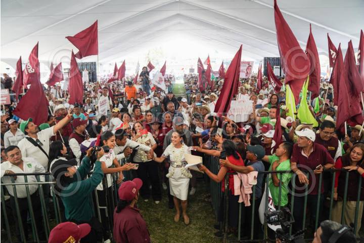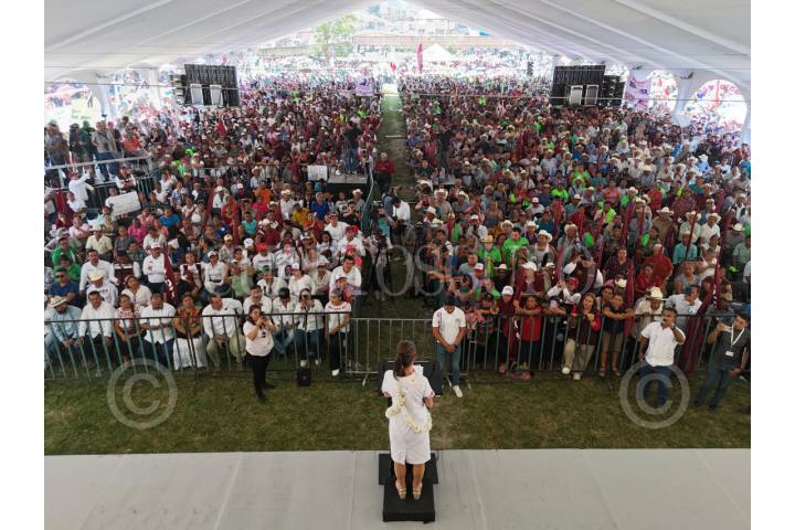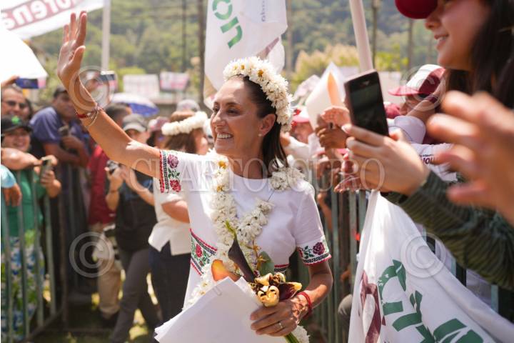 ZONGOLICA, VERACRUZ, 08MAYO2024.- Claudia Sheinbaum, candidata a la Presidencia de la República por la colación Sigamos Haciendo Historia, y la candidata a la gubernatura por las mismas siglas, Rocío Nahle, se reunieron con simpatizantes de esta comunidad. Ahí la morenista prometió el Plan de Justicia para la Sierra de Zongolica. FOTO: PRENSA CLAUDIA SHEINBAUM/CUARTOSCURO.COM