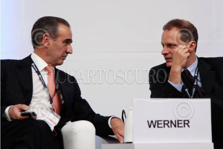 MÉXICO, D.F., 27OCTUBRE2009.- Enrique Zorrilla, director general del banco Nacional de México, conversa con Alejandro Werner, subsecretario de Hacienda y Crédito Público, durante la inauguración del 3er Encuentro de Educación Financiera, esto en Centro Banamex. FOTO: MOISÉS PABLO/CUARTOSCURO.COM