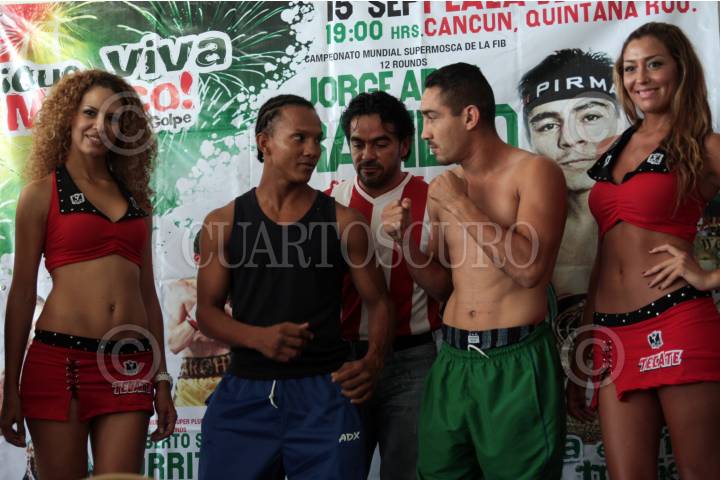 CANCUN, QUINTANA ROO, 13SEPTIEMBRE2009.- Conferencia de prensa con los protagonista de la proxima pelea denominada "Que Viva México de un Solo Golpe III", en la que peleara Humberto "La Zorrita" Soto y Jorge "Travieso" Arce. FOTO: AMARANTA PRIETO/CUARTOSCURO.COM