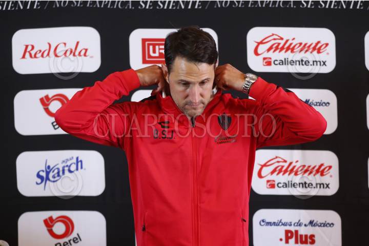 ZAPOPAN, JALISCO. 06DICIEMBRE2023.- Este medio en las instalaciones de la Academia Aga de los Zorros del Atlas, el Presidente de los Rojinegros del Atlas José Riestra, presento como nuevo Director Técnico de la institución al español, Beñat San José, quien tomara las riendas del equipo este Clausura 2024. FOTO: FERNANDO CARRANZA GARCIA / CUARTOSCURO.COM