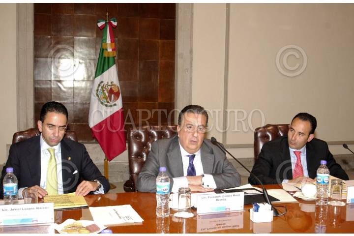 MÉXICO, D.F., 07ABRIL2010.- Esta tarde se reunieron Fernando Gómez Mont, Secretario de Gobernación, Javier Lozano, titular de la Secretaría del Trabajo y Prevención Social (STPS) y Jorge Gil Zuarth, Subsecretario de Gobierno con miembros del Sindicato Mexicano de Electricístas (SME), encabezados por el Sr. Alejandro Muñoz. FOTO: CUARTOSCURO.COM