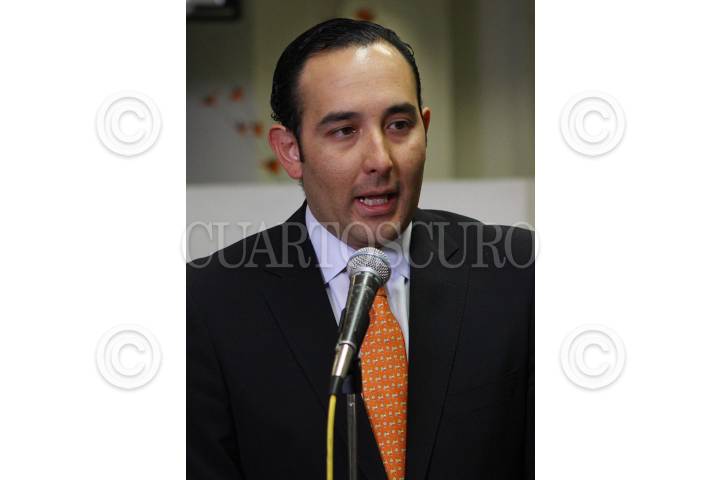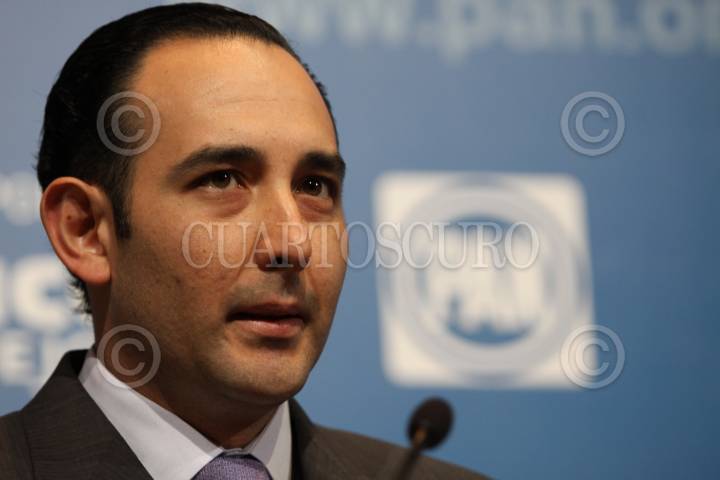 MÉXICO D.F., 25JUNIO2012.- Roberto Gil Zuarth, coordinador de campaña de la candidata del PAN a la Presidencia de la República durante la conferencia donde acusan al pri de compra de votos mediante tarjetas bancarias. FOTO: ENRIQUE ORDÓÑEZ /CUARTOSCURO.COM