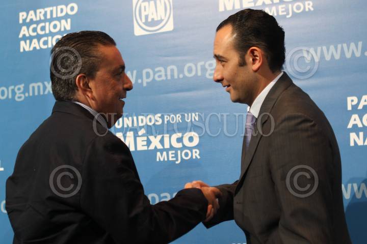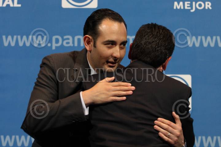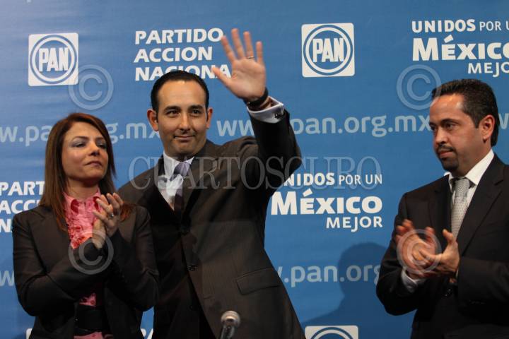 MÉXICO, D.F., 24OCTUBRE2010.- Roberto Gil Zuarth (centro), diputado federal del Partido Acción Nacional (PAN), se registró el día de hoy como candidato a contender por la dirigencia del Comité Ejecutivo Nacional del PAN, en la sede central de este partido político. FOTO: MISAEL VALTIERRA/CUARTOSCURO.COM