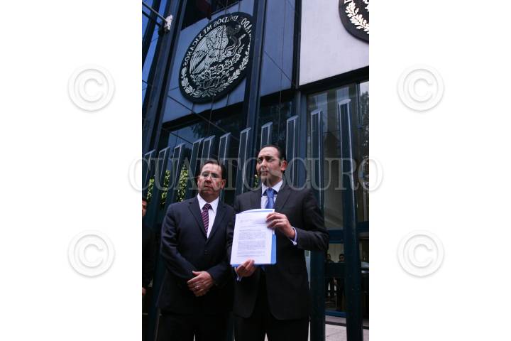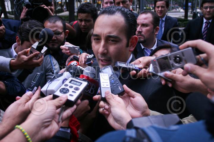 MÉXICO, D.F., 31ENERO2012.- Roberto Gil Zuarth, coordinador de la precampaña presidencial de Josefina Vázquez Mota, acudió a la PGR para denunciar penalmente a quien resulte responsable por intervención ilegal, tras la difusión de una llamada telefónica de la precandidata, en la que acusa a Ernesto Cordero de comportarse como un patán. FOTO: ISAAC ESQUIVEL/CUARTOSCURO.COM