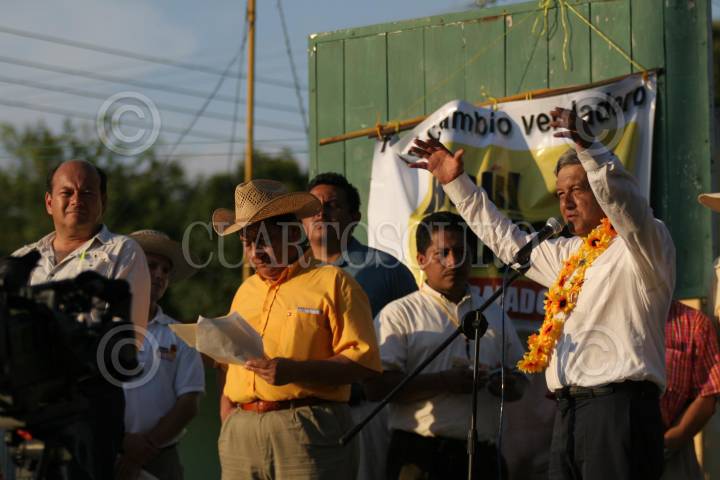 CÁRDENAS, TABASCO, 20SEPTIEMBRE2006.- Andrés Manuel López Obrador reiteró que no mantendrá diálogo con el gobierno federal, por lo cual menciono en la villa Ignacio Allende que “ creamos nuestras propias instituciones, es lo que vamos hacer a partir de ahora". En la gira lo acompaña el candidato a la gobernatura por el Estado César Raúl Ojeda Zubieta. FOTO: MARCO POLO GUZMÁN HERNÁNDEZ/CUARTOSCURO.COM