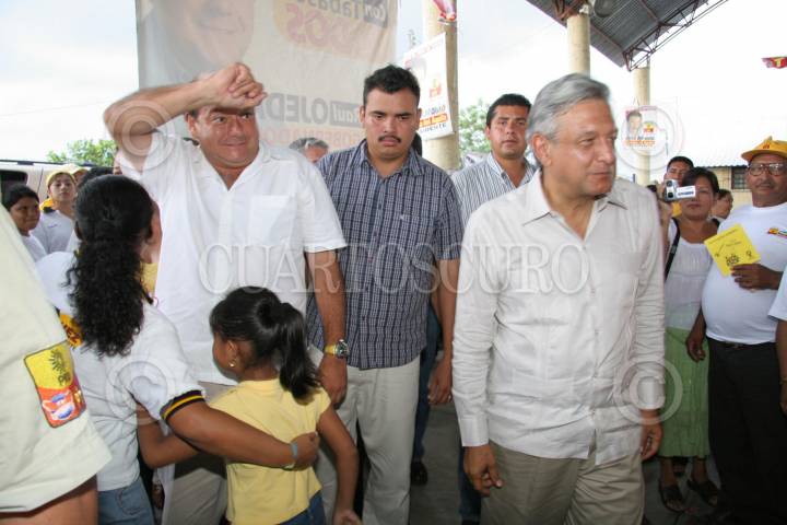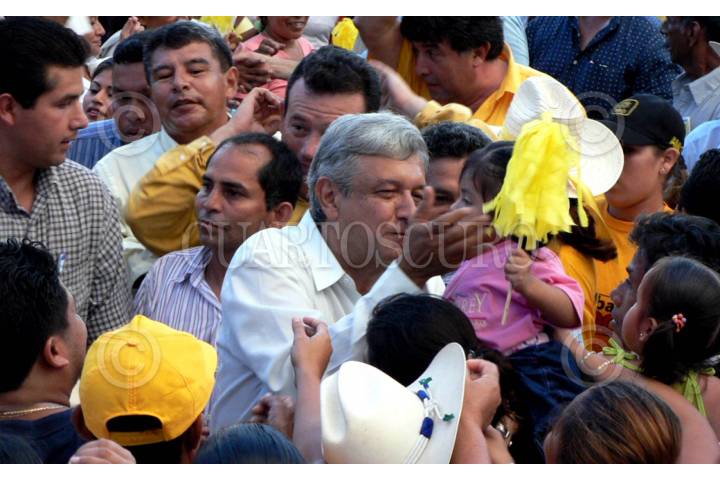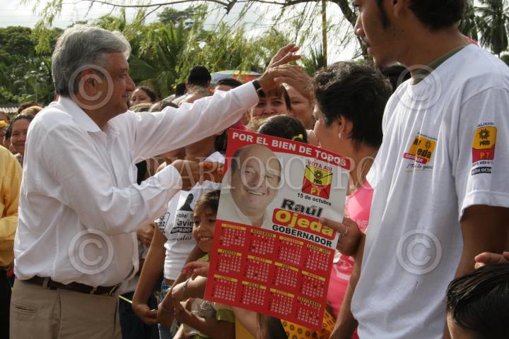 BALANCAN, TABASCO, 06OCTUBRE2006.- Andrés Manuel López Obrador acompaño al candidato a la gobernatura local, Cesar Raúl Ojeda Zubieta, por distintas localidades, en donde el perredista dijo que el ganará la elección y que se cumplirán todas sus propuesta de campaña. FOTO: MARCO POLO GUZMÁN HERNÁNDEZ/CUARTOSCURO.COM