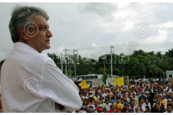 CENTLA, TABASCO, 29SEPTIEMBRE2006.- El ex candidato presidencia de la alianza ¨Por el Bien de Todos¨ Andrés Manuel López Obrador acompaño en gira de proselitismo al candidato perredista para la gobernatura; Cesar Raul Ojeda Zubieta por diversos poblados. FOTO: MARCO POLO GUZMÁN HERNÁNDEZ/CUARTOSCURO.COM