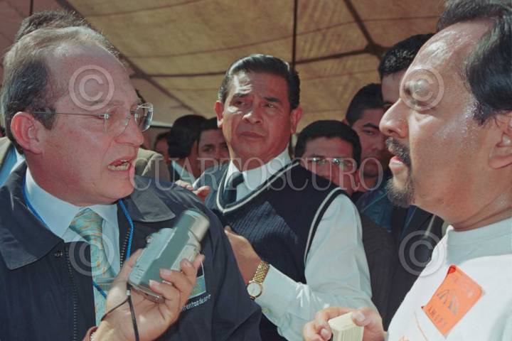 Luis E. Zuno Chavira, delegado en Alvaro Obregón escuchando las protestas de los comerciantes que fueron desalojados el pasado 13 de diciembre 2001 de Joaquin Gallo y Prolongación Sta Fe. FOTO: Susana Navarrete/CUARTOSCURO.COM
