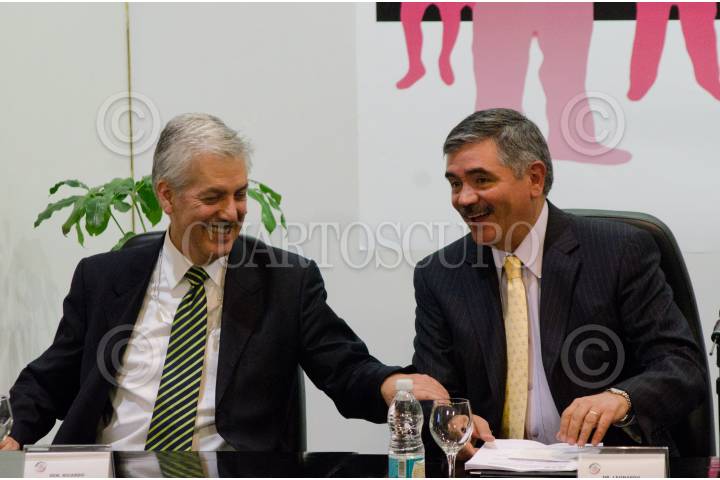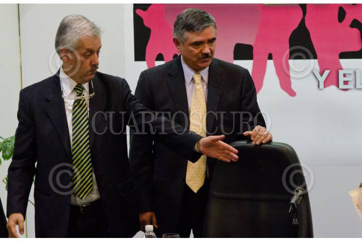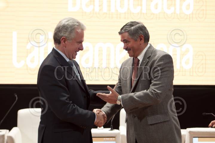 MÉXICO, D.F., 08DICIEMBRE2011.- Leonardo Valdez Zurita, Consejero Presidente del IFE junto a Alejandro Poire, Secretario de Gobernación durante el II Foro de la Democracia Latinoamericana que tuvo lugar en el anfiteatro Simón Bolívar del Antiguo Colegio de San Idelfonso. FOTO: ENRIQUE ORDÓÑEZ/CUARTOSCURO.COM