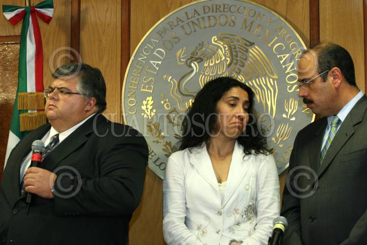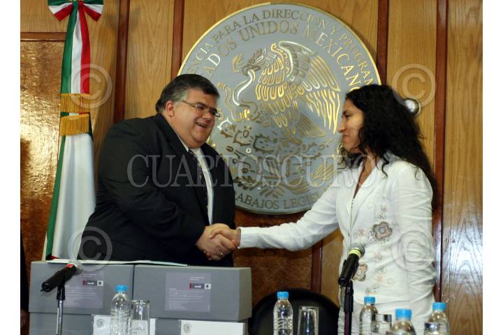 MÉXICO, D.F. 08SEPTIEMBRE2007.- Agustín Carstens, secretario de Hacienda y Crédito Público entregó el proyecto del presupuesto a la presidenta de la mesa directiva Ruth Zvaleta. FOTO: PAOLA HIDALGO/CUARTOSCURO.COM