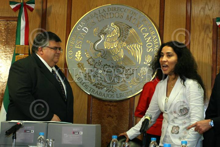 MÉXICO D.F. 06MARZO2008.-Los diputados Chiristian Castaño (PAN) y Ruth Zvaleta (PRD) durante la sesión ordinaria en la Cámara de Diputados. FOTO: GUILLERMO PEREA/CUARTOSCURO.COM