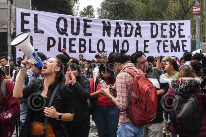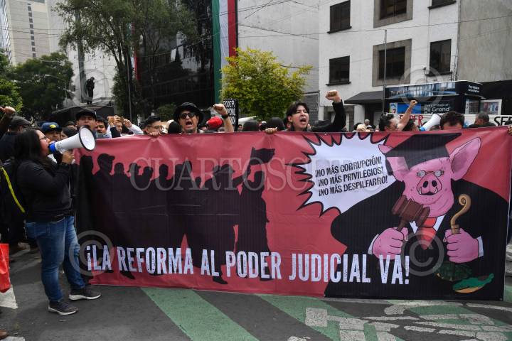 CIUDAD DE MÉXICO, 10SEPTIEMBRE2024.- Un grupo de jóvenes y trabajadores del Estado de México se manifiestan a favor de la Reforma Judicial sobre la calle de Madrid, uno de los accesos del Senado de la República en donde se prevé se de primera lectura a la iniciativa de reforma. FOTO: MARIO JASSO/CUARTOSCURO.COM