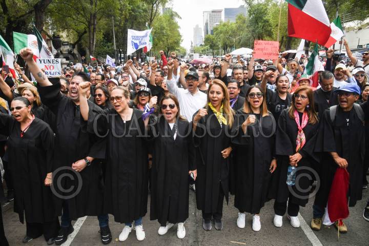 CIUDAD DE MÉXICO, 10SEPTIEMBRE2024.- Trabajadores del Poder Judicial continúan en protesta al exterior del Senado de la República, en donde comenzó la discusión de la reforma judicial durante la sesión ordinaria de este martes. FOTO: MARIO JASSO/CUARTOSCURO.COM