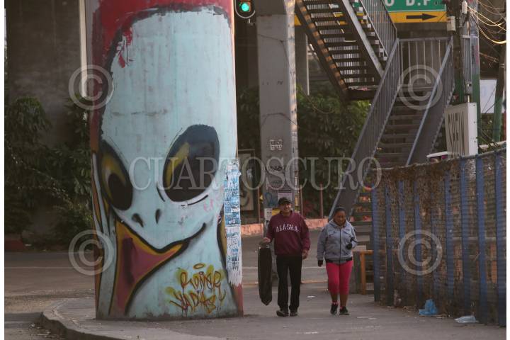 CUERNAVACA, MORELOS, 01ENERO2025.- Imagen cotidiana en el primer día del 2025 en la capital de Morelos. Una pareja camina a lado de un grafiti de gran tamaño. FOTO: MARGARITO PÉREZ RETANA/CUARTOSCURO.COM