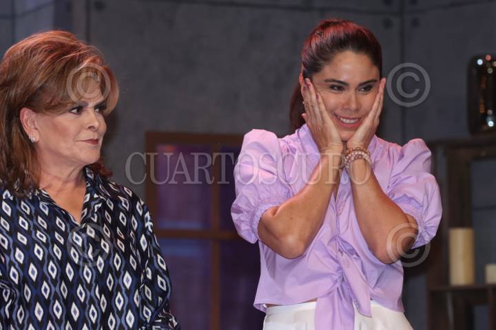 CIUDAD DE MÉXICO, 09MAYO2025. Festejo por un año ininterrumpido de funciones de la obra “Las Leonas”, acudiendo sus protagonistas Mara Patricia Castañeda y Paola Rojas, en el Teatro Mexico del Centro Cultural Manolo Fábregas. FOTO: EDGAR NEGRETE LIRA/CUARTOSCURO.COM