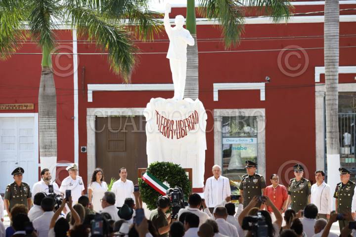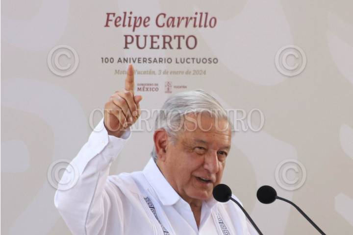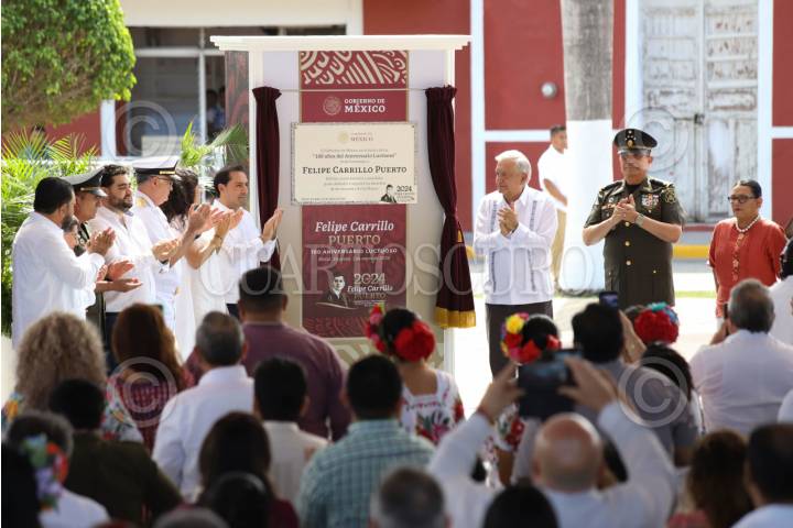 MOTUL, YUCATÁN, 03ENERO2023.- El Presidente de la Republica, Andrés Manuel López Obrador, encabezo la ceremonia por el aniversario de los 100 años de la muerte de Felipe Carrillo Puerto, quien por decreto desde el 1 de enero del 2024, será el "Año de Felipe Carrillo Puerto, Benemérito del Proletariado, Revolucionario y Defensor del Mayab". Al evento acudieron Mauricio Vila Dosal, gobernador del estado de Yucatán y demás autoridades de las tres ordenes de gobierno. FOTO: MARTÍN ZETINA/CUARTOSCURO.COM