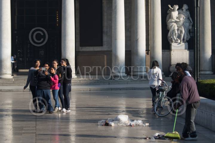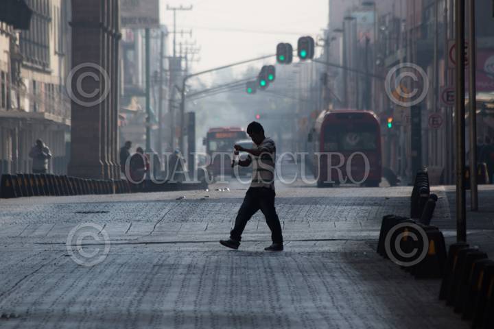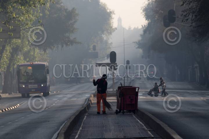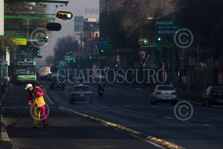 CIUDAD DE MÉXICO, 01ENERO2019.- Con un presencia de una bruma grisácea los capitalinos amanecieron el primer día de año, esto a pesar de que el día de ayer la ciudad lució despejada, desde tempranas horas se observó como la gente inició con sus actividades cotidianas, a algunos la noche no les alcanzó y aprovecharon cualquier rincón para descansar unas horas más. Trabajadores de limpieza iniciaron el barrido de las principales avenidas, como Eje Central. FOTO: MOISÉS PABLO /CUARTOSCURO.COM