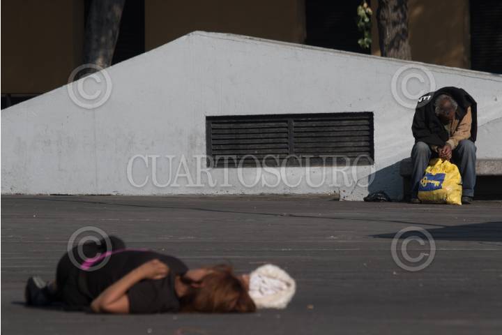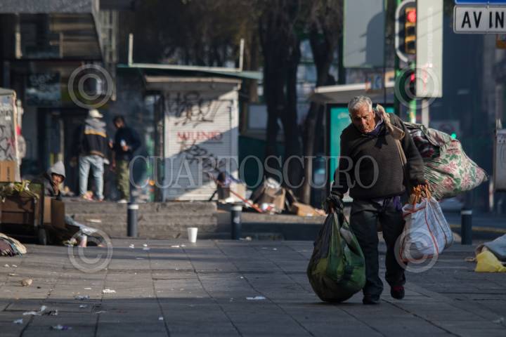 CIUDAD DE MÉXICO, 01ENERO2019.- Un hombre que durmió en la cera de Eje Central recoge sus cosas pasada lo noche, para iniciar una jornada más en las calles. FOTO: MOISÉS PABLO /CUARTOSCURO.COM