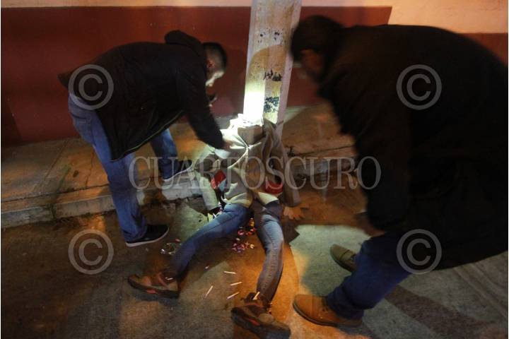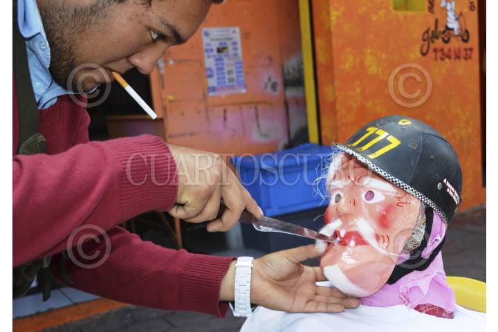 HUATUSCO, VERACRUZ, 31DICIEMBRE2014.- Tradiciones en el Estado de Veracruz en vísperas del año nuevo, un grupo de personas caminan por las calles disfrazadas bailando y pidiendo aguinaldo y la venta y arreglo del muñeco que representa "el año viejo" para la quema a la media noche. FOTO: ELIZABETH RUIZ /CUARTOSCURO.COM