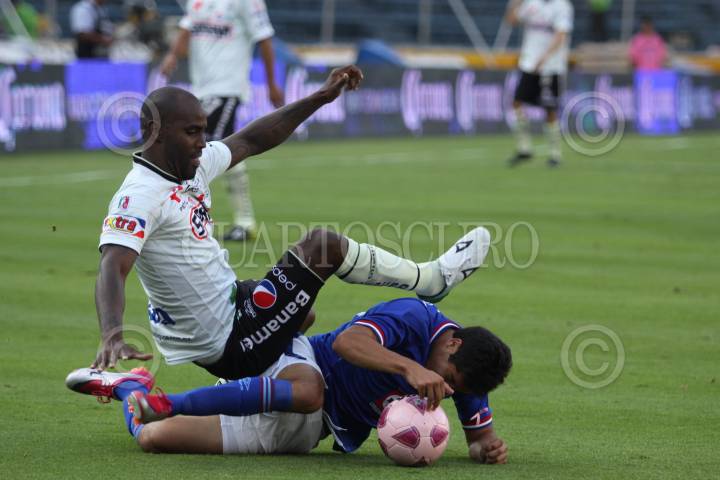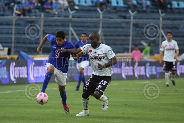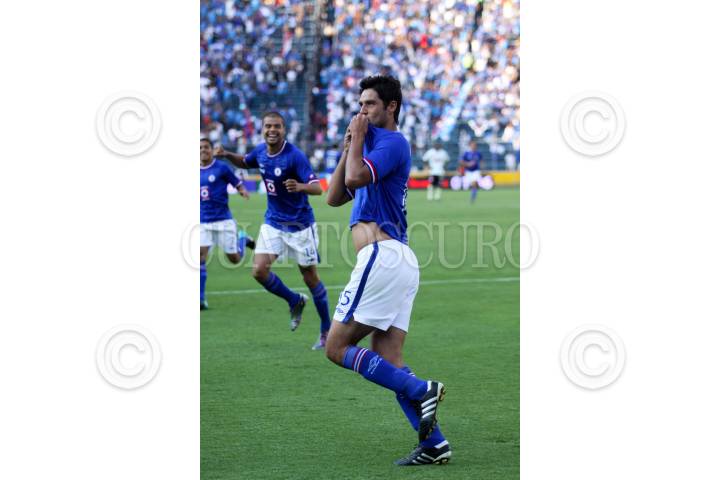 MÉXICO, D.F., 16OCTUBRE2010.- Horacio Cervantes el defensa del Cruz Azul anotó el segundo tanto de la victoria celeste 3-0 ante los Santos de Torreón, en partido disputado en el Estadio Azul. La maquina se afianzó en el superliderato de la liga mexicana. FOTO: MOISÉS PABLO/CUARTOSCURO.COM