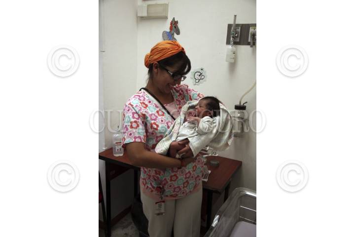 MÉXICO, D.F., 14MARZO2009.- Paramedicos del ERUM, atienden a una bebe de aproximadamente 24 horas de nacida, que fue abandonada en la casa de asistencia para la tercera edad con razon social "San Antonio de Padua", ubicada en la esquina del eje 5 Sur y Calzada de la Viga, en la colonia Militar Marte, posteriormente fue trasladada al hospital pediatrico de Iztapalapa, bajo la supervición del Ministerio Público de Iztacalco. FOTO: LUZ ACEVEDO/CUARTOSCURO.COM