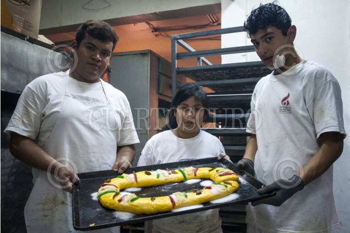 MÉXICO, DF., 06ENERO2014.- Jóvenes en situación de abandono social que habitan en el albergue Fundación Refugio en el Barrio de Tepito, elaboran distintos productos en la Panadería, elaborando en esta ocasión Rosca de Reyes que hacen sobre pedido para sus clientes y de la cual han vendido decenas para poder subsistir. En La Panadería, se realizan también Galletas y Panes de repostería producidos por los jóvenes. FOTO: ENRIQUE ORDÓÑEZ /CUARTOSCURO.COM